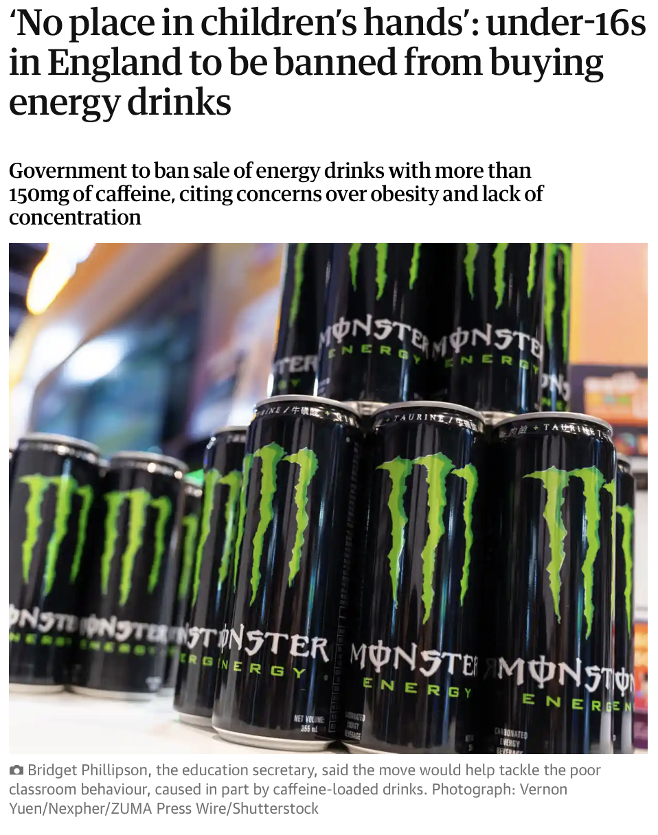 “How can we expect children to do well at school if they have the equivalent of a double espresso in their system on a daily basis?”, said Wes Streeting, the health secretary.